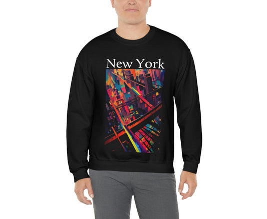 New York Historic Brooklyn Bridge In A Cubism Original Art. Unisex Heavy Blend Crewneck Sweatshirt.