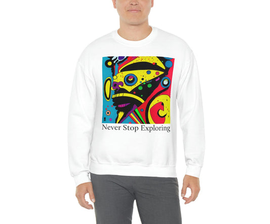 Never Stop Exploring. Original Art. Unisex Heavy Blend Crewneck Sweatshirt.