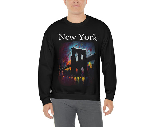 New York City Iconic Brooklyn Bridge Original Art. Unisex Heavy Blend Crewneck Sweatshirt.