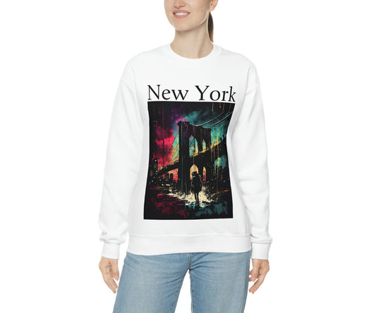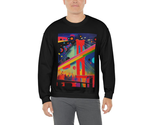 Colorful Night at The Brooklyn Bridge, New York City. Original Art. Unisex Heavy Blend Crewneck Sweatshirt.