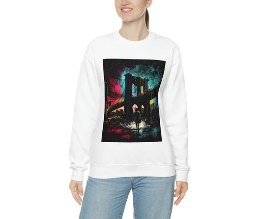 Rushing The Brooklyn Bridge In New York City. Original Art. Unisex Heavy Blend Crewneck Sweatshirt.